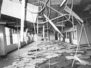1994년 노스리지 지진 동안 많은 건물이 광범위한 비구조적 내부 손상을 입었으며, 천장 그리드와 타일의 일부가 떨어졌습니다.