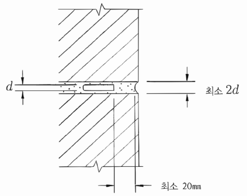 - 일반 구역: 최소 90mm 이상 또는 $0.035h$ ($h$: 벽체 높이) 확보