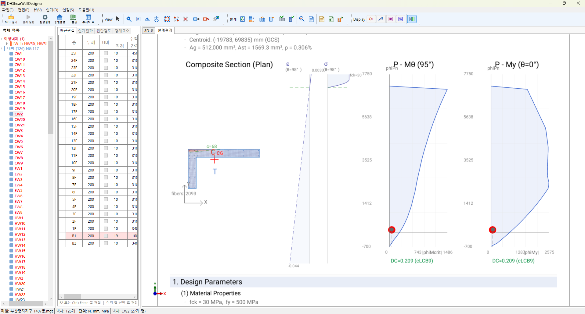 DHShearWallDesigner 는 MIDAS Gen 의 MGT/ANL 출력을 받아 KDS 14 20 (2021) 기준으로 전단벽을 자동설계·검토하는 WPF 데스크톱 프로그램이다.