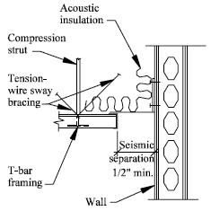 - 벽면 간격 확보 – 천장 시스템과 벽 사이에 최소 12.7mm(1/2인치) 간격을 확보하여 지진 시 충돌 방지
